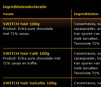 Heeft u ze al ontdekt? De overheerlijke extra pure SWITCH chocolade tabletten in vier smaken? De kwaliteitschocolade wordt alleen gemaakt van de allerfijnste ingrediënten. En dat proef je!